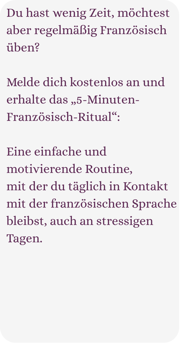 Melde dich kostenlos an und erhalte das „5-Minuten-Französisch-Ritual“: